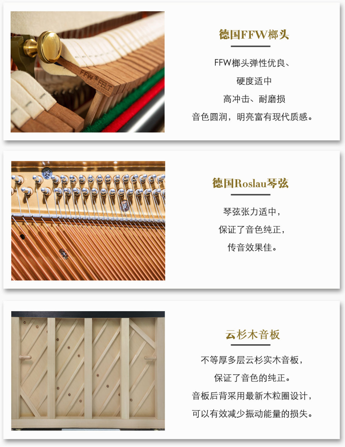 ◆ 日本進(jìn)口呢氈使鋼琴的音色更柔美