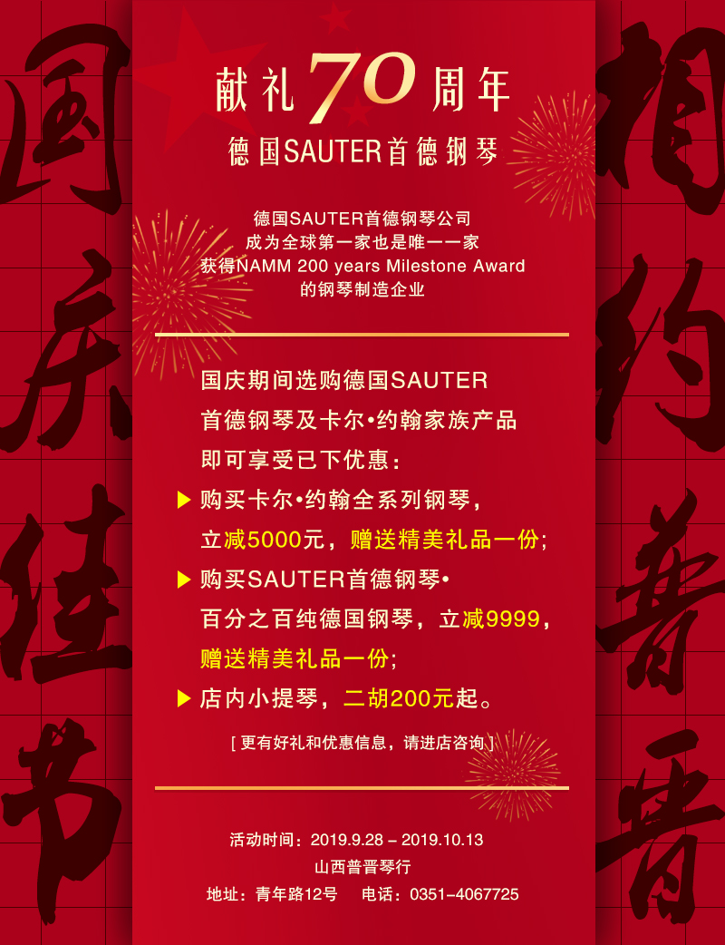 普晉琴行,十一大促,所有到店的客戶,均有小禮物相送,這個(gè)國慶讓我們買買買起來!