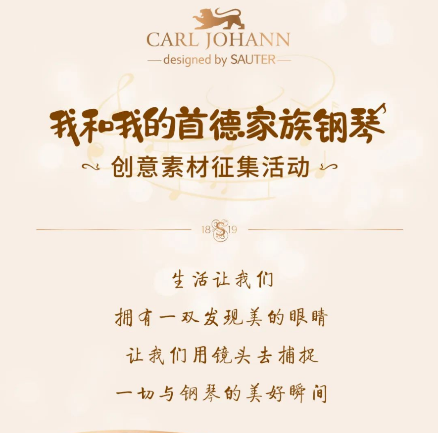④添加話題 #我和我的首德家族鋼琴# 發(fā)表在您的個(gè)人社媒頻道,并在標(biāo)題或評論@首德鋼琴官方號(hào);或也可發(fā)送稿件到此郵箱:sauterpiano@163.com,記得留下您的聯(lián)系方式。